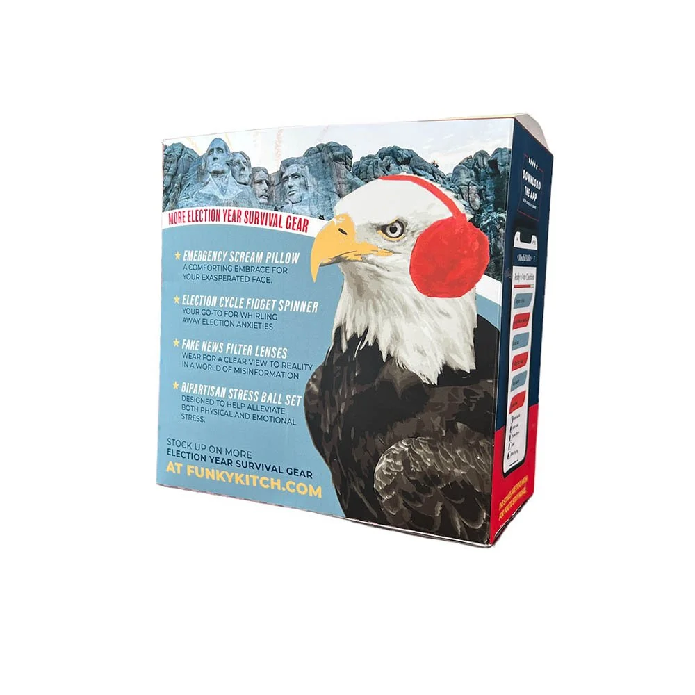 Warning: While the Election yEARmuffs offer temporary relief from election stress, they are not a substitute for active civic engagement. Over-reliance on them can lead to ignorance of critical political and social matters, weakening democracy and jeopardizing important issues. Even though we’re exhausted, staying engaged, voting, and shaping a better future for all is crucial. YES, WE CAN make a difference together.