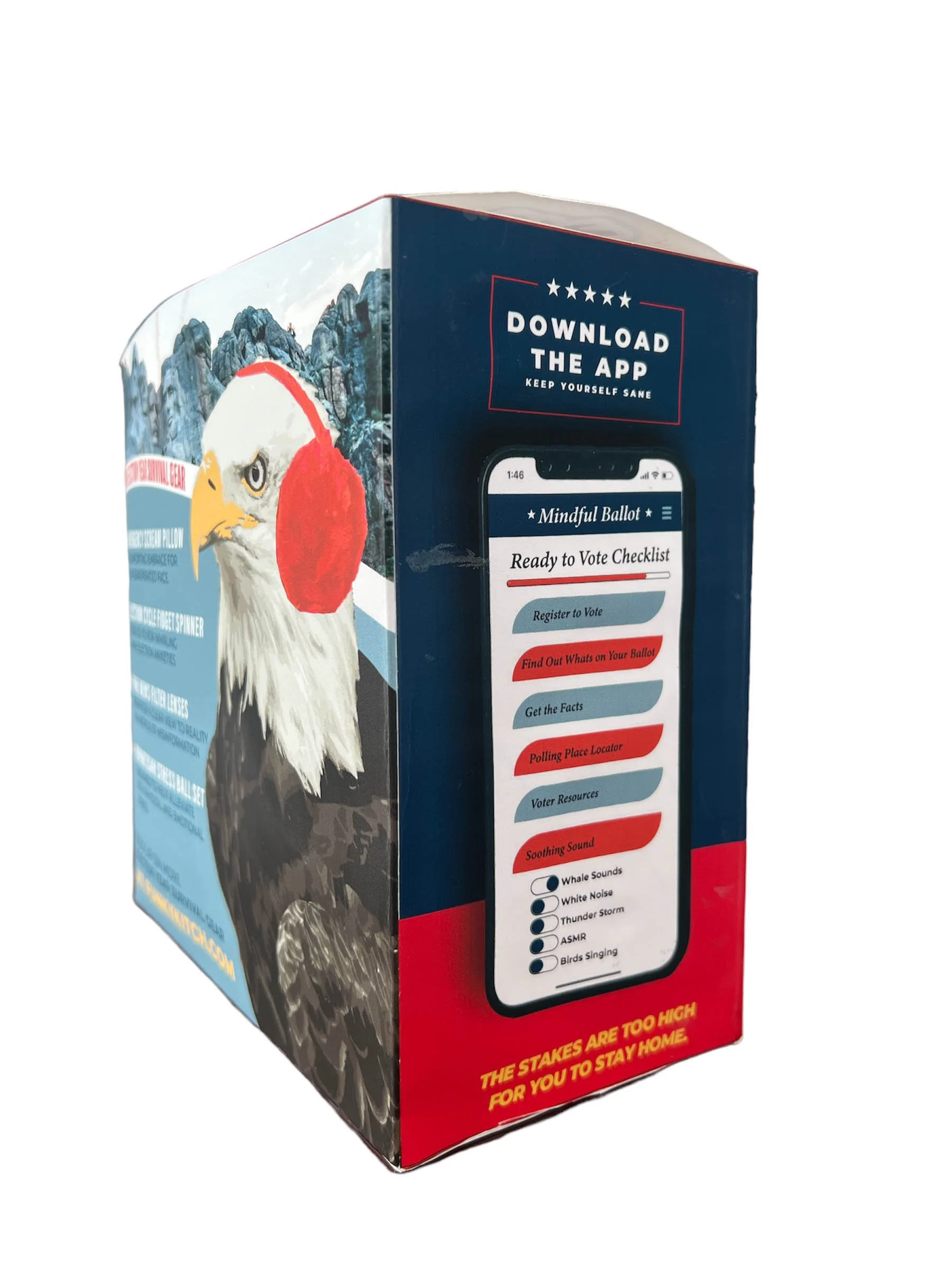 Another election year is upon us and while it is important to be civically engaged, it can take a toll on one’s mental health. Election yEARmuffs are noise-canceling Bluetooth headphones designed to provide temporary relief from election stress by muffling political noise. Most importantly, they pair with an app that helps you register to vote, and offers election resources, information, and relaxation sounds for when you need a break.