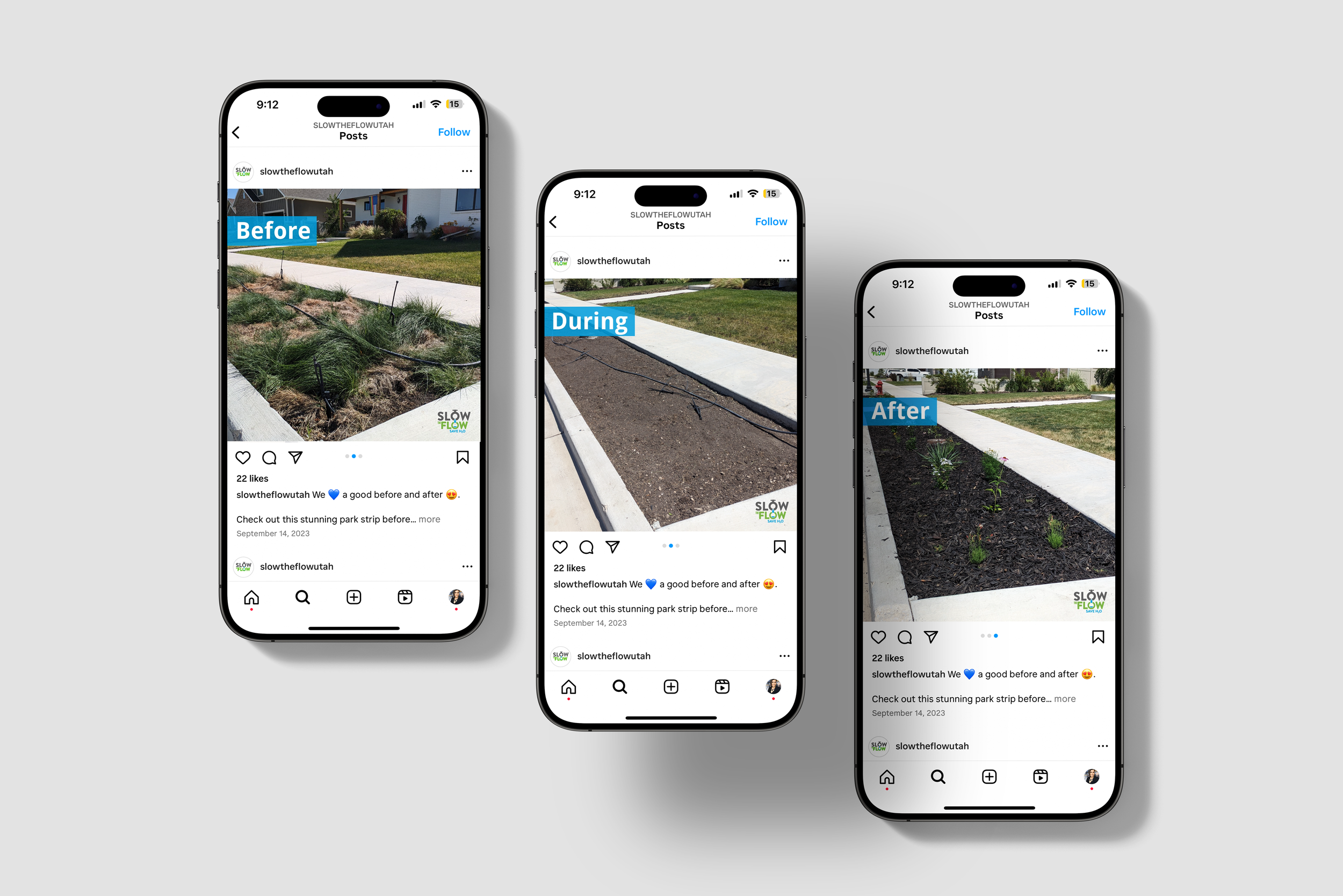 Xeriscape Before, During and After Carousel Post for Slow the Flow